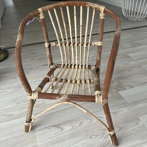 Bambus hængestol med ophæng/kæde. Som ny. Højde 126, bredde 80, dybde 68. Skind medfølger ikke.