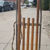 Rød kælk i plastmateriale med bremse. Velegnet til børn 3+, 84cm længde.