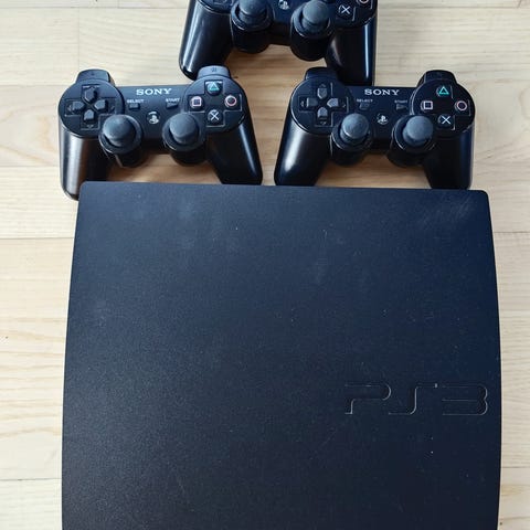 Sony Playstation 3 spillekonsol med controllere og spil