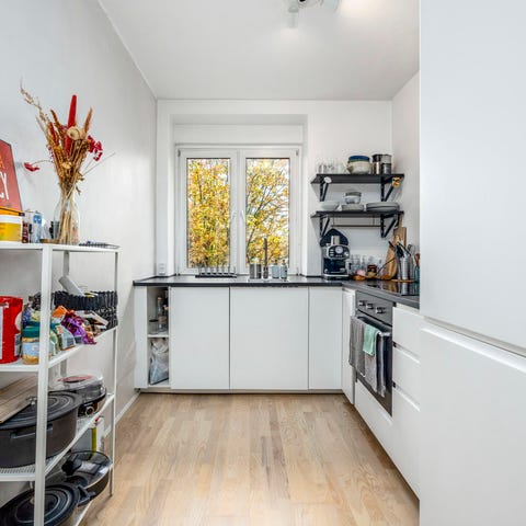 - Det er et 15-20 år gammelt køkken, så der er naturligvis tilsvarende slid. Men al funktionalitet er som ny.