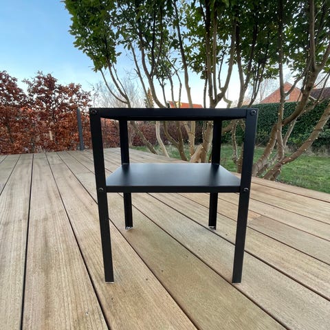 Hvudt netal-sengebord med 3 skuffer. H 57, B 41, D 50,5 cm. Lille hak i overfladen.