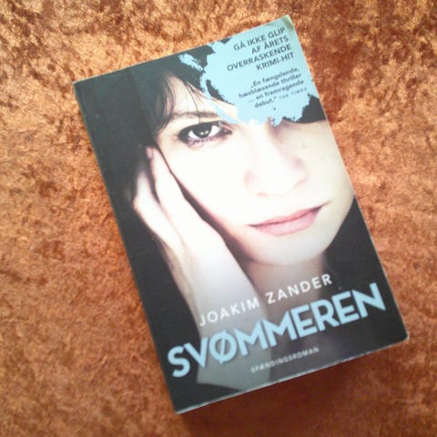 Joakim Zander Svømmeren er en spændingsroman. Bogen har et omslag med et billede af en mand med hue og skæg i snevejr.