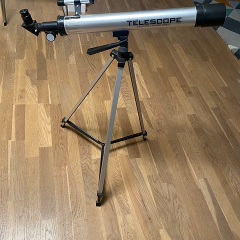 Fippla Teleskop Junior teleskop med justerbart stativ. Designet til begyndere og juniorbrugere, velegnet til observation af nattehimlen og landskaber. Et teleskop med tripod, og 30 gange forstørrelse, fra . Sigt mod stjernene og skift imellem F300mm og 30mm objektiver. Et sjovt teleskop til at udforske stjernene med for de små nysgerrige sjæle.