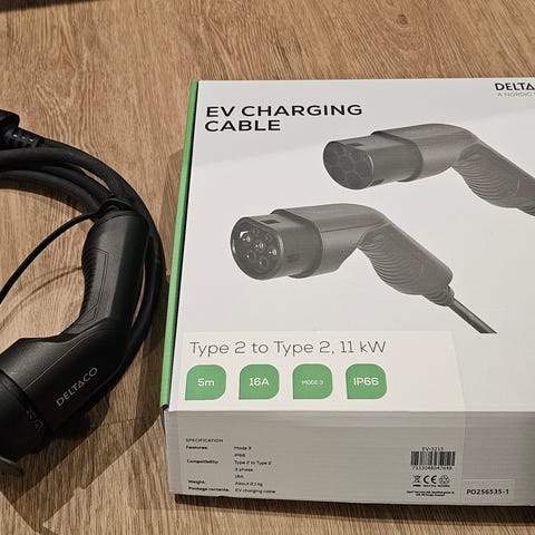 Nivema Type 2 ladekabel med 32A strømkapacitet. Kabelen har en rød farve og er beregnet til opladning af elbiler med Type 2 stik.