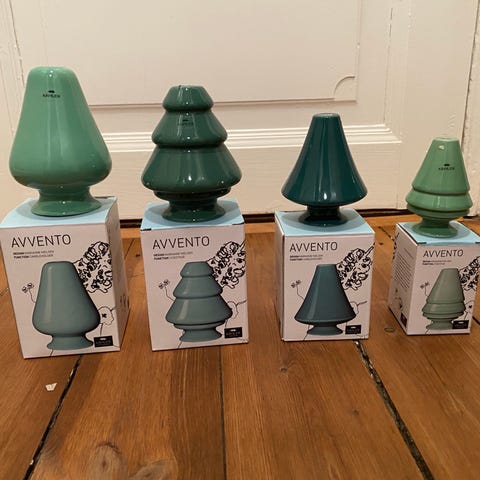 Div. AVENTO juletræer I grønlig og grålig keramik fra mærket KAHLER