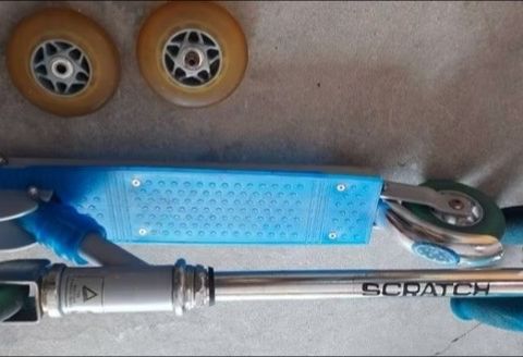 Børne løbehjul med tre hjul, lyse grøn farve. Designet til stabilitet og balance for børn. Næsten ikke brugt