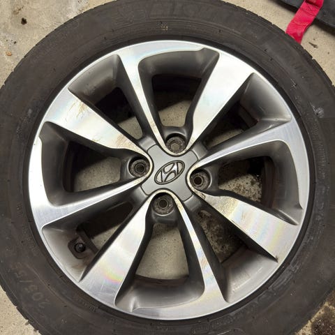 4 stk fælge med helårsdæk 175/65-14. 2 stk Pirelli all season med 7 mm mønsterdybde fra 2019 + 2 stk Tourador all climat TF2 med 7 mm mønsterdybde fra 2024. Hjulene er afbalanceret og klar til montering. De ligger I 8800 Viborg, og er godkendt til vinterkørsel.