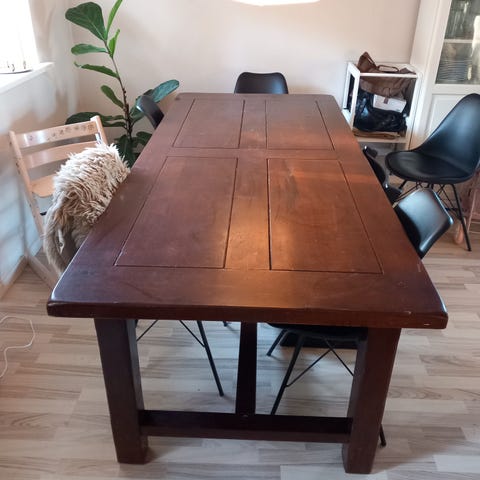 Flot og rustikt plankebord / langbord udført i lærketræ.