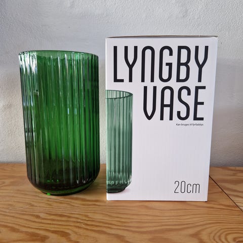 Flot mørkegrøn glasvase fra lyngby. 20cm. Står rigtig flot uden skår, sparsomt brugt.