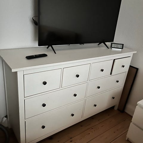 Sælger denne kommode, da vi har brug for en anden løsning. Den måler 160x96 og er hvid. Den fejler intet, men har brugsspor. Se billederne.