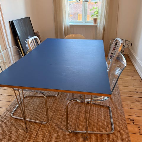 Vi søger en tillægsplade til et spisebord fra Strum. med en bredde på 140 cm. Gerne med grøn lineoleum men andre farver og materialer har også interesse.