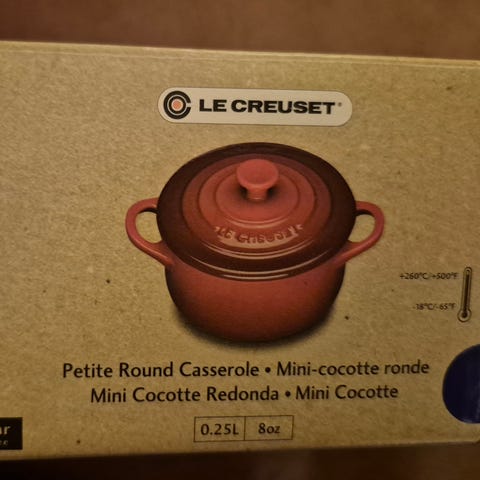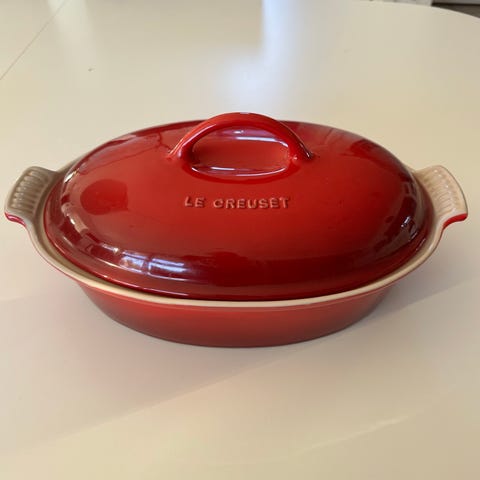Le Creuset rund stegeso / ovnfast fad i keramik.