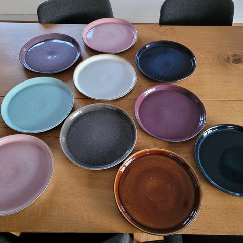 Bitz frokosttallerken i forskellige farver. Sorte udenpå og farvet indeni. Har 1 x blå og 2 x amber