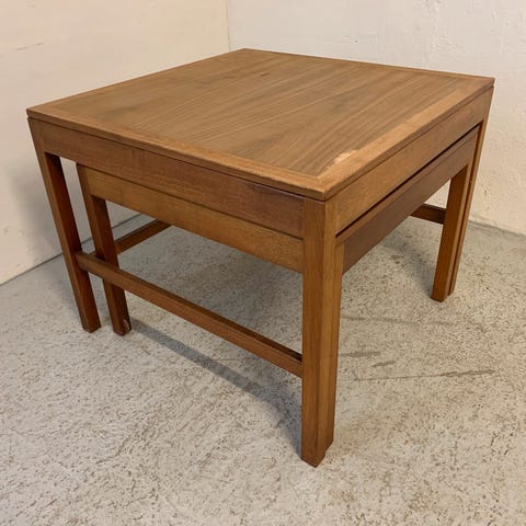 Sælger disse sjældne Børge Mogensen indskudsborde model 5377B. Det lille bord er monteret med to hjul, som gør det let at trække ud. Bordene er i god stand men med nogle brugsspor. Sælges kun samlet. Kan ikke sendes grundet størrelse og vægt.
