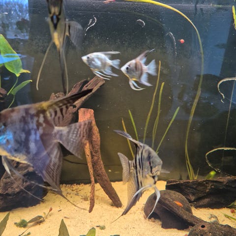 Altum Scalare til salg dansk opdræt 5 stk peru og 5 stk blå ca 7-8 cm det er en stime fisk og går sammen med Discus så minimum 5 skal købes saml. Pris 450- kr får 5 scalare