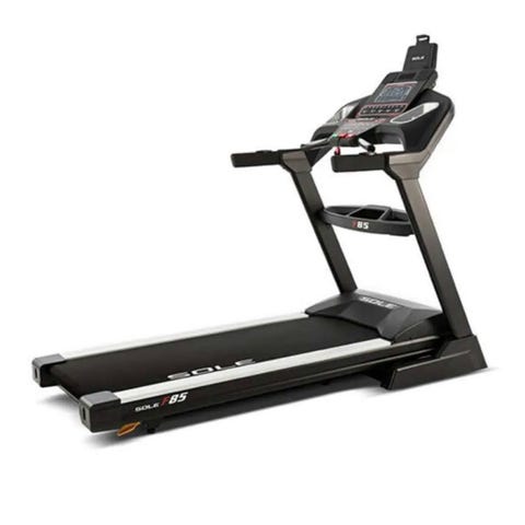 Sole F85 løbebånd med digitalt display, håndpulsmåler og forskellige træningsprogrammer. Løbebåndet har en robust konstruktion og er egnet til hjemmebrug til konditionstræning og løb.