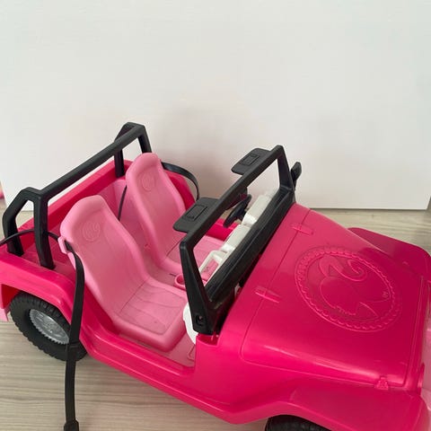 Stor lyserød bil til eksempelvis Barbie med klistermærker.
