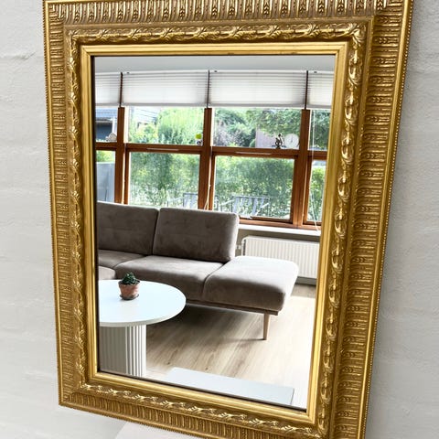Spejl med guldramme og til 2 x fyrfadslys, højde 64 cm, bredde 56 cm