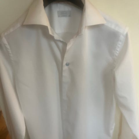 Hugo Boss skjorte i hvid farve, størrelse XL, fremstillet i bomuld. Skjorten har detaljer som knapper og kontraststof indvendigt ved knaplukning og ærmer. Str. 43/17 Regular fit