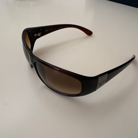 Ray-Ban solbrille model RB 4108 601-S 3M i rigtig god stand. Stelfarve sort. Polarized glas. Glas har været skiftet. Originale glas medfølger løst ved siden af, dog er der små hakker i det højre glas.