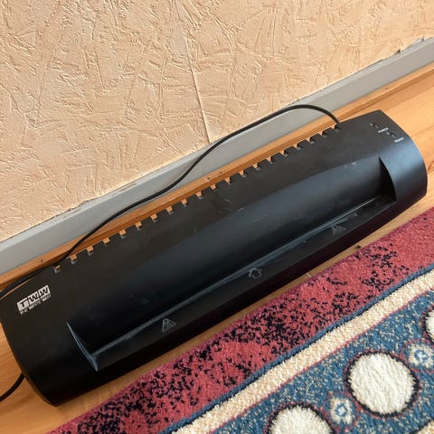 United Lamineringsmaskine til laminering af dokumenter. Enheden er designet til at beskytte og bevare papirmaterialer ved hjælp af varme og plastfilm. Velegnet til kontorbrug. Inklusiv papirskærer