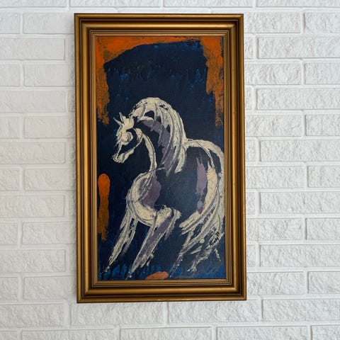 Maleri af hest. Lavet af N. Werner. 1982.