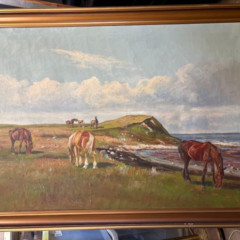 Maleri af hest. Lavet af N. Werner. 1982. Måler 37 x 45 cm.