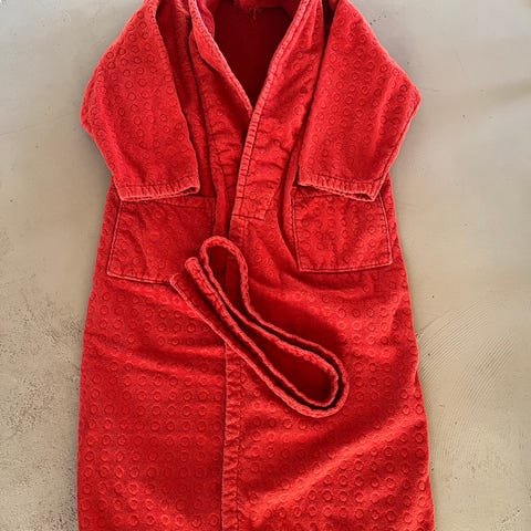 Brugt badekåbe, som du kan hente kvit og frit. Den er altid vasket med parfumefri vaskemiddel og den er selvfølgelig nyvasket