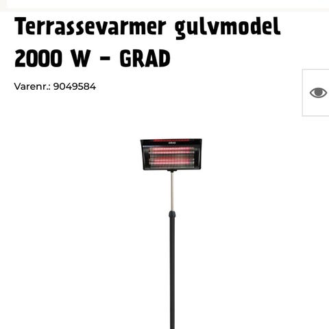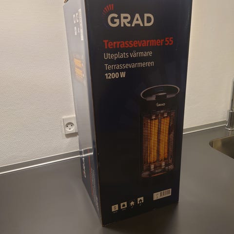 GRAD terrassevarmer model PHT-35 på 700 W er en gulvmodel med en højde på 41 cm