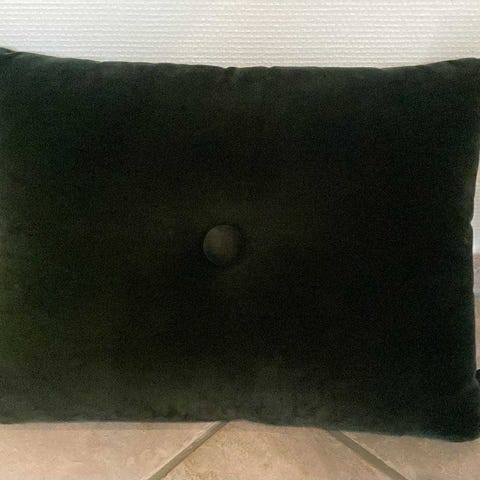 4 grønne HAY Dot puder. Grå knapper på den ene side og grønne på den anden side.