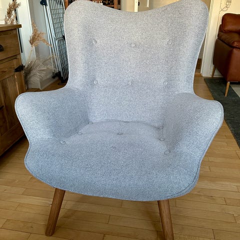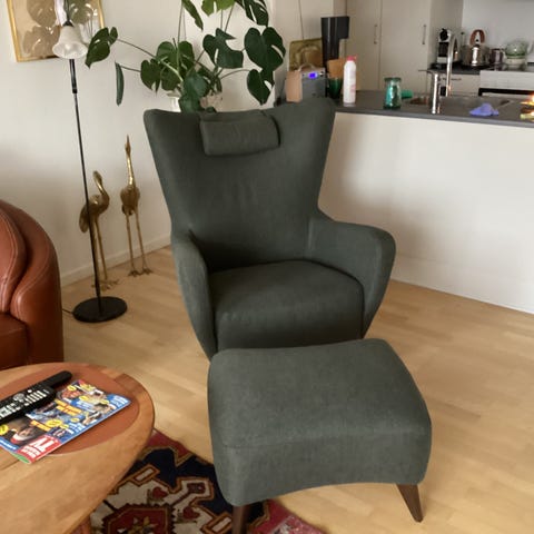 Det massive træstel i eg giver Elena en stabil base, mens det lakbehandlede finish fremhæver stolens elegante linjer. Sædet er designet til at give kroppen plads til at lande, og stofbetrækket føles både blødt og holdbart. Her får du en lænestol, der ikke bare er en del af indretningen, men en del af din hverdag.
