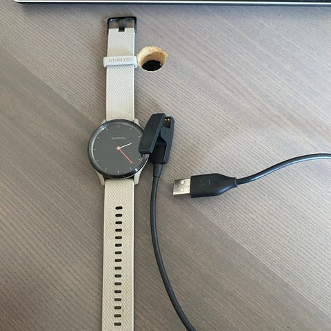 Garmin VIVOMOVE HR ur, ur virker fint samt data overførsel til app men selve notifikation funktionen på selve ur skærmen er utydelig (selve klokken kan ses) butterfly urrem men trænger til ny, da strop er gået i stykker, ladekabel, brugervejledning og orig. emballage medfølger kr. 199,-