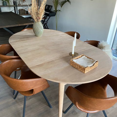 udtræksbord længde udtrukket 170 cm 6 personer er folieret med laminat