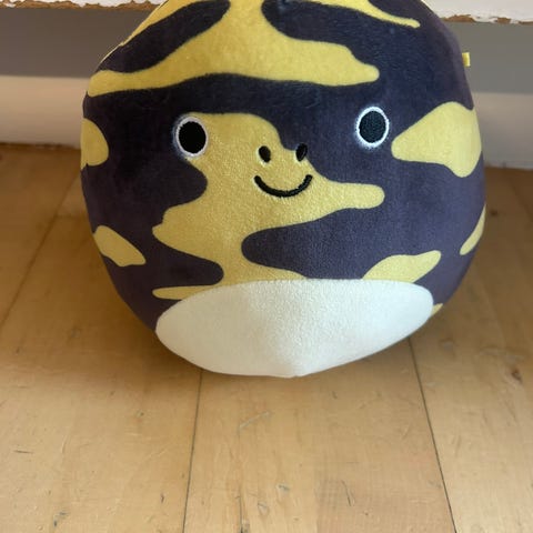 Squishmallows blæksprutte bamse i lilla og cremefarver. Blød og krammevenlig, velegnet som legetøj eller dekorativt element.det eneste er en lille plet men ellers intet andet