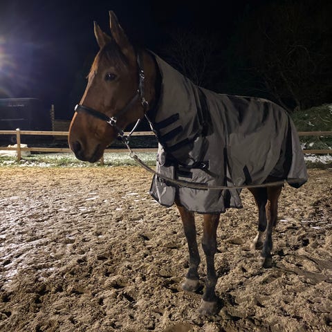 Han kan alt det en kommende to års. skal kunne... han er sød og nem til Alt, kan stå bundet i stald, både alene og med andre... Han ved endnu ikke han er hingst går pt på fold, med en lejrkammerat på hans egen alder... og et par hopper...
