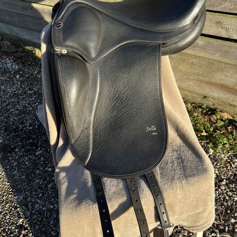 Sadlen er købt i august 2020. Model X har høj talje og passer godt til kvinder, idet sædet ikke er bredt og fladt. Den ligger godt på de fleste heste og kopjern kan udskiftes til bredere eller smallere model.