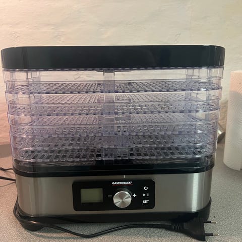 eller tørreovn, er et køkkenapparat, der fjerner fugt fra mad ved hjælp af kontrolleret varme og luftcirkulation for at konservere det og intensivere smagen, perfekt til at lave snacks som tørret frugt, grøntsager, jerky, og urter, som holder længere og bevarer næringsstoffer, da den arbejder ved lavere, mere stabile temperaturer end en ovn.
