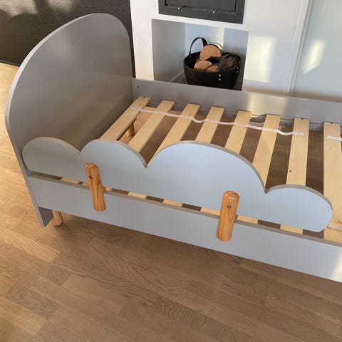 Børneseng i målene 95x209x96,5 sælges. Den er brugt men i god stand. Hurtig afhentning!