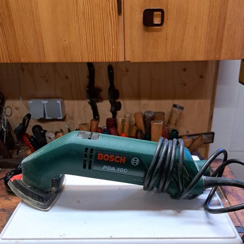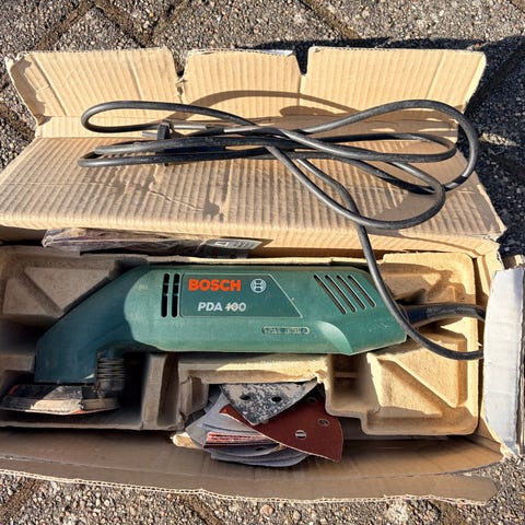 Bosch PDA 180 delta sliber med ledning. Værktøjet er designet til forskellige slibe- og skæreopgaver. Farve: grøn. Model: PDA 180.