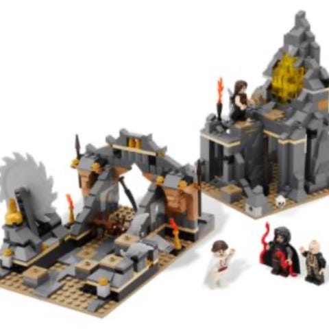 LEGO 7572 Persia byggesæt med detaljerede figurer og mekaniske funktioner. Sættet indeholder en stor sav med roterende klinge, en tårnstruktur med gennemsigtige gule elementer og flere minifigurer. Designet til at skabe scener fra Persien-temaet.