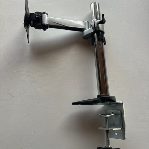 "Delanco Dual Desk Mount er en bordbeslagsløsning designet til at holde to skærme med størrelser fra 12 til 27 tommer. Den er velegnet til brug på skriveborde og giver mulighed for justering af skærmposition for bedre ergonomi. Monteres med klemme til bordkanten."