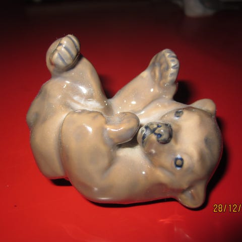 Skulptur af bjørn - måske patineret bronze, den er tung. Højde 11 cm.