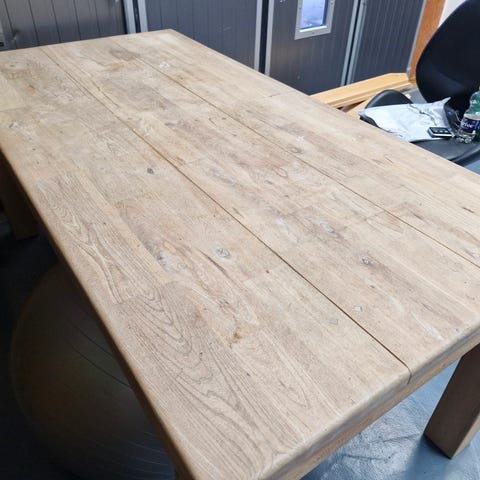 Hvidpigmenteret spisebord massiv egetræ. Sorte ben. 5 år gammelt