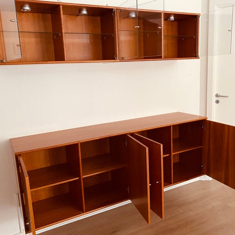 Vi har brugt dem samlet og har været rigtig glade for dem. Det giver en hel del god opbevaringsplads uden at det optager et masse gulvplads og får rummet til at virke mindre.