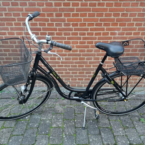 Køreklar Raleigh damecykel med lys, lås og kurv