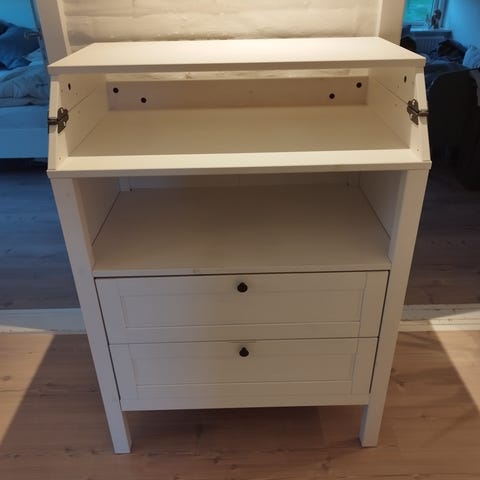 Meget stabilt og god opbevaringsplads med et åbent rum og to store skuffer.