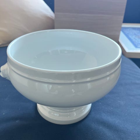 Pillivuyt skål i hvidt porcelæn. (Der står Rosenstand, men DBA har ikke Pillivuyt i mærke) Skålen har en rund form med to små håndtag.