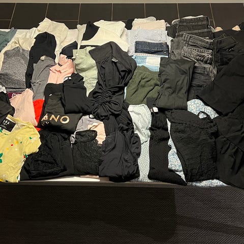 Alt er fint og uden huller. Noget er stadig med prismærke og der er mærker fra H&M, Lindex, Holly and White, hjemmestrik. Der er fest tøj og hverdagstøj.