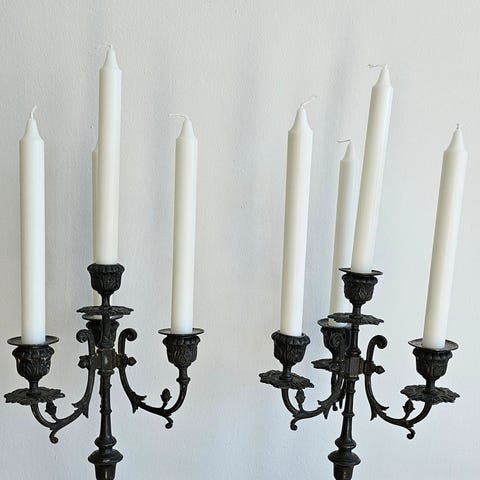 2 fede retro lysestager måler 61.5 cm i højden ved ikke hvad de er lavet af.