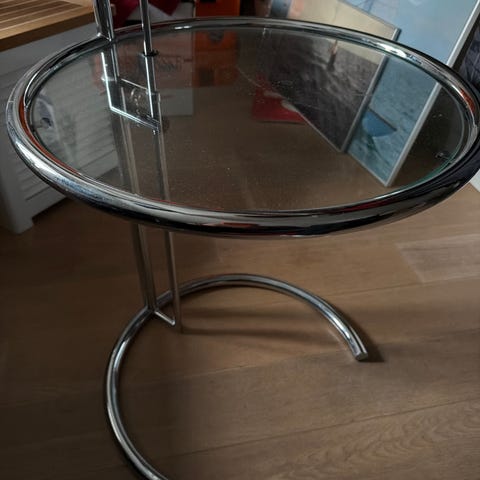 Sælger disse to stilrene og minimalistiske sideborde, der passer perfekt ind i det moderne hjem. Bordene har en kraftig plade i hærdet glas og en solid, tung fod i krom, som sikrer, at de står stabilt.